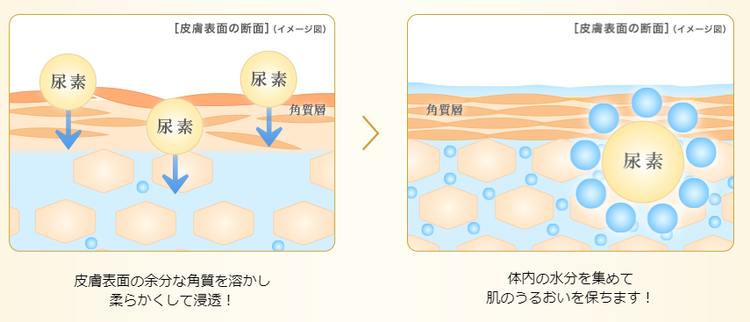 使用時,20%的尿素起作用,能夠有效地將體內水分帶入皮膚角質層,並防止水分從皮膚表面散失,所以能夠「讓肌膚保持新鮮彈力」。此外,還能同時使「肌膚光滑」,使肌膚恢復正常健康的狀態。