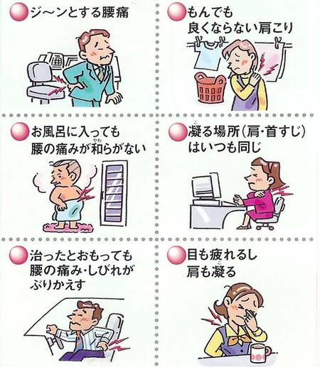  改善以下症狀:肌肉疼痛/關節疼痛(腰背痛,肩僵硬,五十肩等),神經痛,四肢麻木,眼睛疲勞